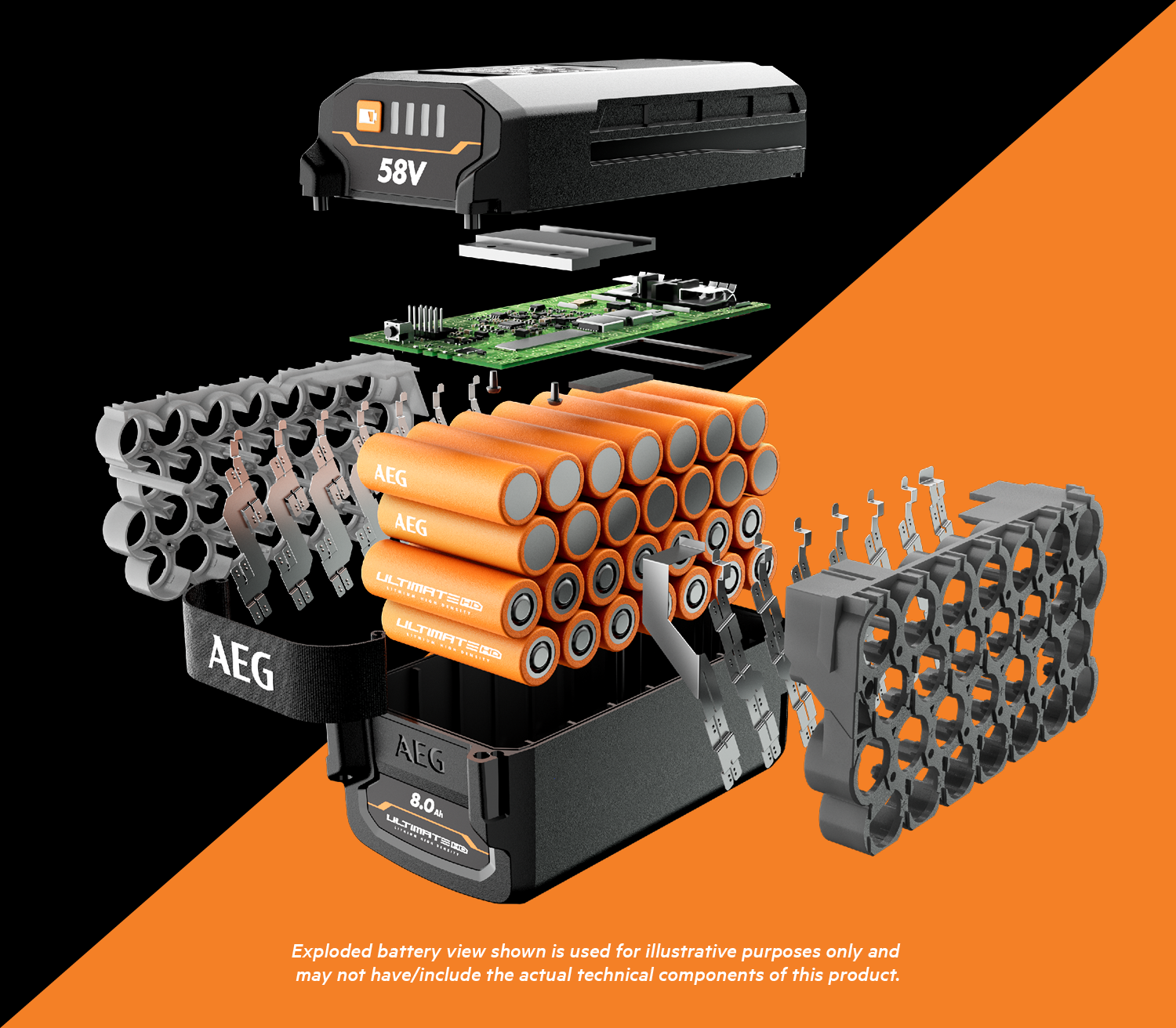 AEG’s ULTIMATE HD batteries are compatible with all 58V outdoor tools and chargers. The batteries feature an LED fuel gauge with overload and overtemp signalling, plus robust seals for improved protection against excess moisture and dust in typical harsh outdoor environments. An impact-resistant polymer casing protects ULTIMATE batteries from hard knocks and accidental drops.